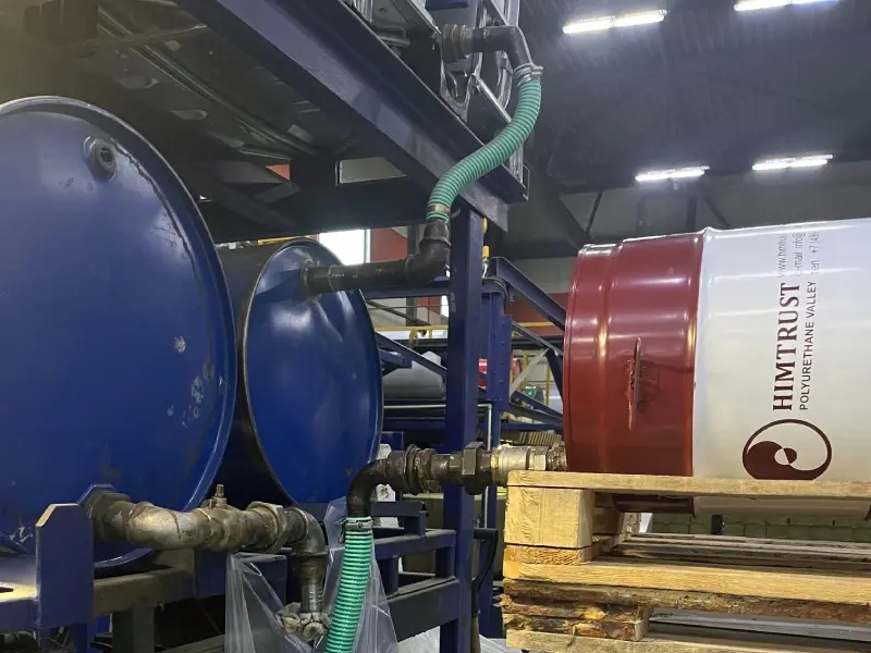 Команда «Химтраст» провела аудит линии Jinbin Machinery на производстве сэндвич-панелей в Якутске. Проверили работу оборудования, протестировали ПУ-клей 2К 100:100, выявили узкие места и подготовили рекомендации, которые помогут повысить скорость линии до 6–8 м/мин и стабилизировать качество готовых панелей