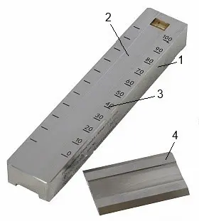 1— плита, 2 — паз, 3 — шкала, 4 — скребок.