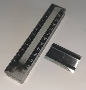 Для определения степени перетира по ГОСТ 31973-2013 гриндометр устанавливают на горизонтальную поверхность, выемку паза заполняют краской. Скребок устанавливают под углом 90º к плите, перемещают вдоль шкалы гриндометра от 100 до 0 мкм. По шкале определяют размер частиц, при котором видны 3 штриха от агрегатов наполнителей ЛКМ.