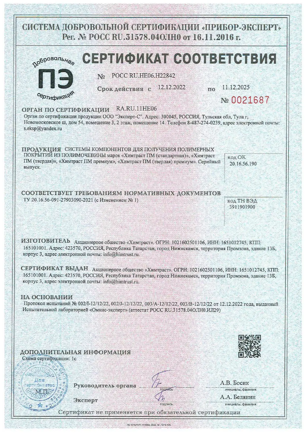 Сертификаты на продукцию
