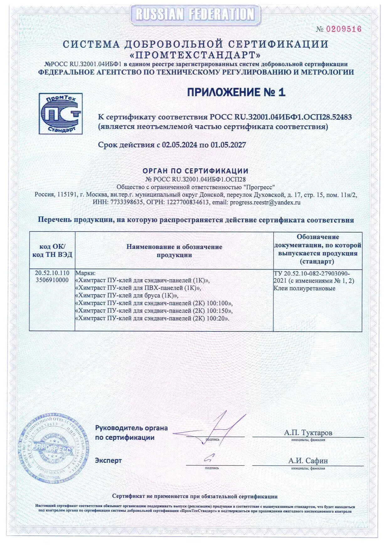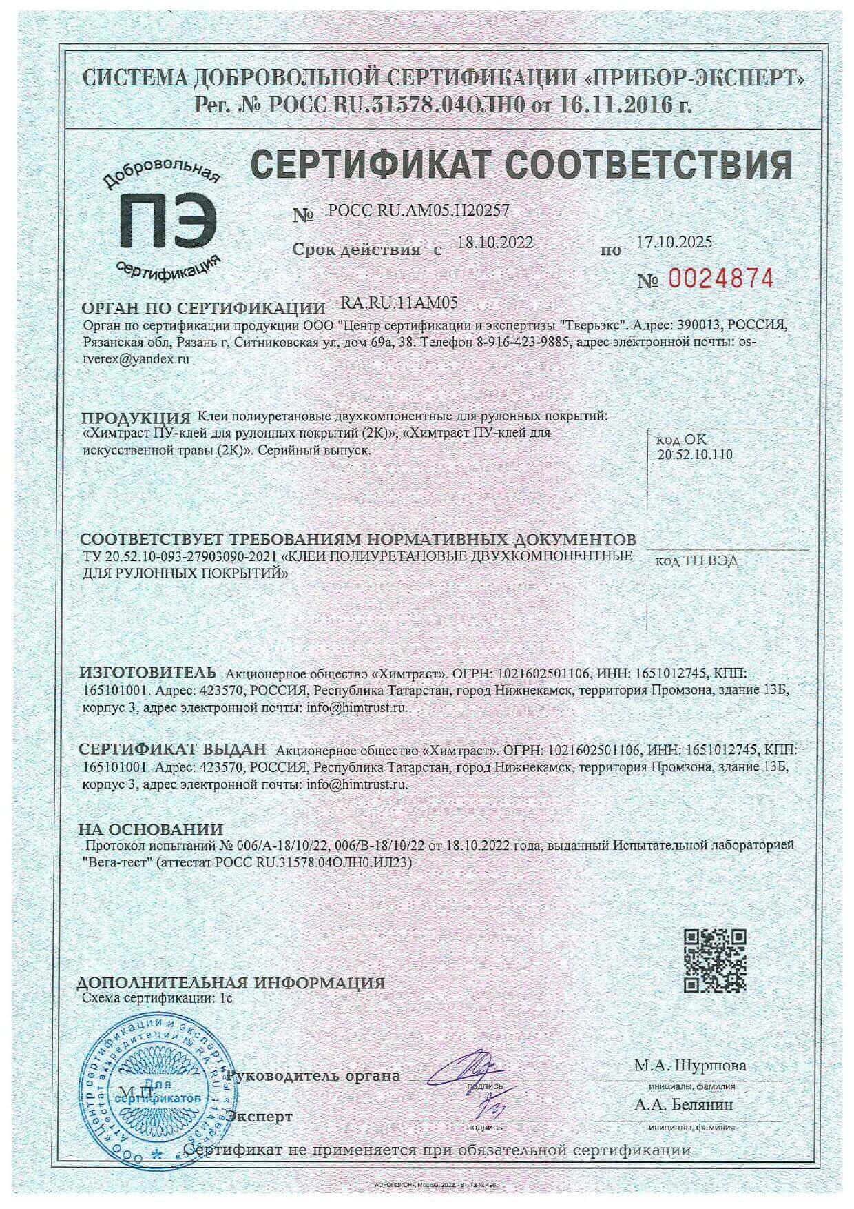 Сертификат соответствия на полиуретановый клей для изготовления покрытий