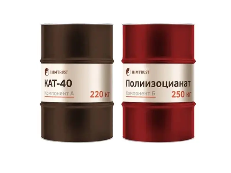 Изоцианатный компонент (компонент Б) — полимерный дифенилметандиизоцианат, ( марок: «Lupranat M 20 S», «Millionate-MR 200», «Wannate-PM 200», «Voranate M 229 SH», «P-MDI M-200», «Desmodur 44V20L», «Cosmonate M-200», «Sabic MDI 2031»), - прозрачная не расслаивающаяся жидкость коричневого цвета.